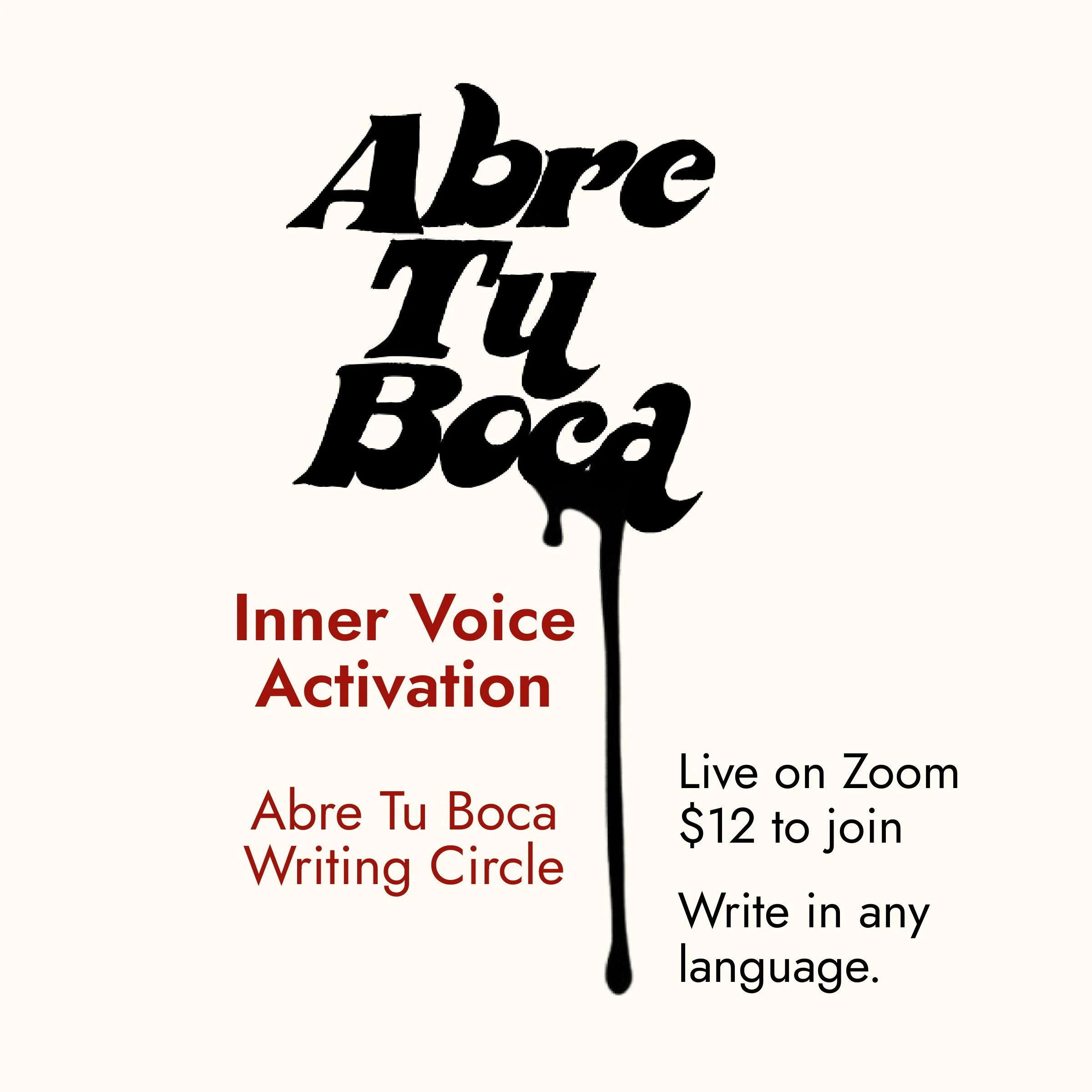 Each circle is guided live by Amanda Aileen Fisher, creator of the Abre Tu Boca Method.