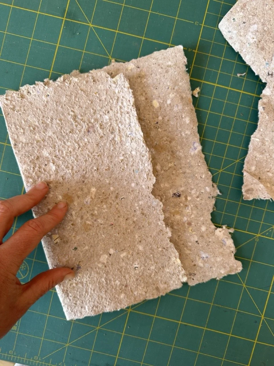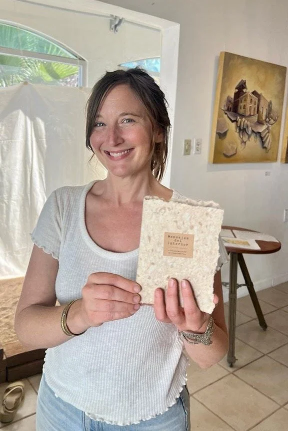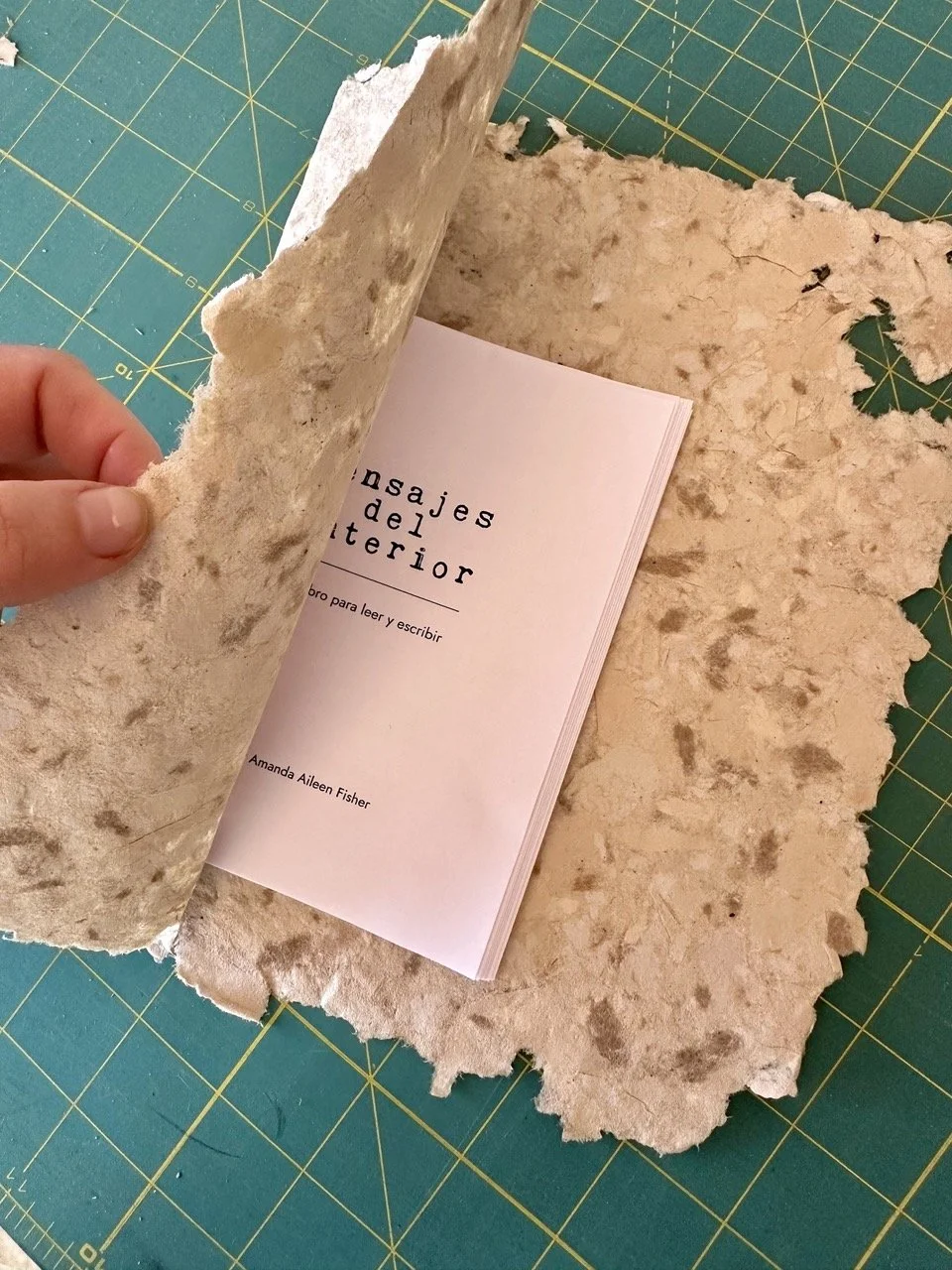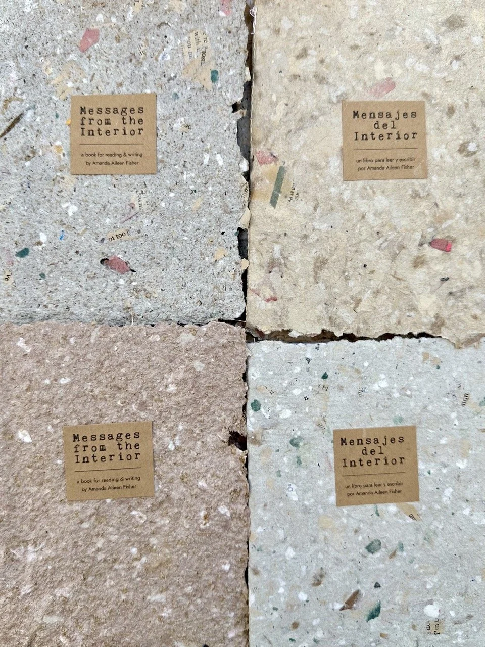 Handcrafted by the artist, the books are made from paper Amanda, herself, created. This same paper pulp was also used to form elements of the installation, linking the book to the physical space of the original experience.